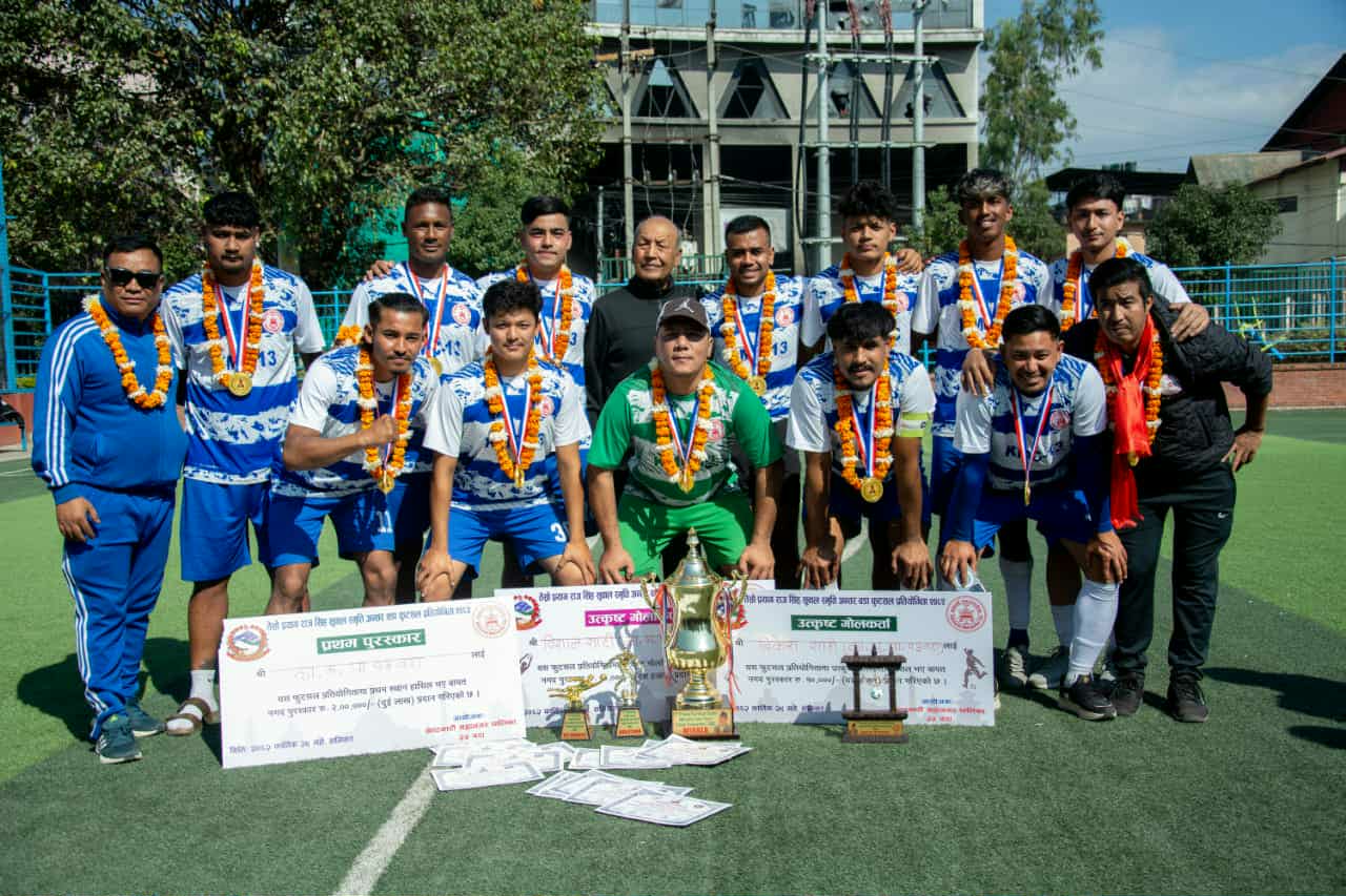 "content": "<p><span style=\"-webkit-text-size-adjust: 100%;\">काठमाडौँ, कात्तिक २९ गते । वडा नं १३ ले शनिबार तेस्रो प्रयागराज सिंह सुवाल स्मृति अन्तर वडा फुटसल प्रतियोगिताको उपाधि जितेको छ । वडा १३ पहिलो संस्करणमा उपविजेता बनेको थियो ।</span><br></p><p><br></p><p>वडा २३ को आयोजनामा लैनचौर फुटसल मैदानमा आयोजना भएको प्रतियोगिताको फाइनलमा वडा १३ ले वडा नं ४ लाई पेनाल्टि सुटआउटमा २-० ले पराजित गर्यो । निर्धारित समयको खेल गोलरहित बराबरीमा सकिएको थियो ।</p><p><br></p><p>पेनाल्टि सुटआउटमा विजयी टिमका लागि अभय राना र आसिस कपालीले गोल गरे । वडा नं ४ बाट पेनाल्टि सुटआउटमा गोल हुन सकेन ।</p><p><br></p><p>अभय फाइनलका म्यान अफ दि म्याच बने । यसैगरी वडा १३ का विकेश शाही सर्वाधिक गोलकर्ता बने । उनले कूल ७ गोल गरे । यसैगरी वडा ४ का विक्रान्त नरसिंह राना सर्वश्रेष्ठ खेलाडी र वडा १३ का विशाल शाही सर्वश्रेष्ठ गोलकपर चुनिए ।</p><p><br></p><p>विजेता वडा १३ ले ट्रफीसहित दुई लाख रुपियाँ प्राप्त गर्यो । उपविजेता वडा ४ टिमले एक लाख रुपियाँ प्राप्त गर्यो । यसैगरी, विधागततर्फ उत्कृष्ट हुने सर्वश्रेष्ठ खेलाडी, सर्वाधिक गोलकर्ता र सर्वश्रेष्ठ गोलरक्षकलाई जनही दस-दस हजार रुपियाँले पुरस्कृत गरियो ।</p><p><br></p><p>पहिलो संस्करणमा वडा नं १४ र दोस्रो संस्करणमा १६ ले उपाधि जितेका थिए ।</p><p><br></p><p>समापन कार्यक्रममा आयोजक वडा १३ का अध्यक्ष मचाराजा महर्जनले यस्ता प्रतियोगिता विगतमा केन्दीय स्तरबाट मात्र भइहेको बेला आफूहरूले धेरै मिहिनेतकासाथ बजेट निकासा गरेर यति ठुलो प्रतियोगिता गर्न सफल भएको बताउनुभयो ।</p>",