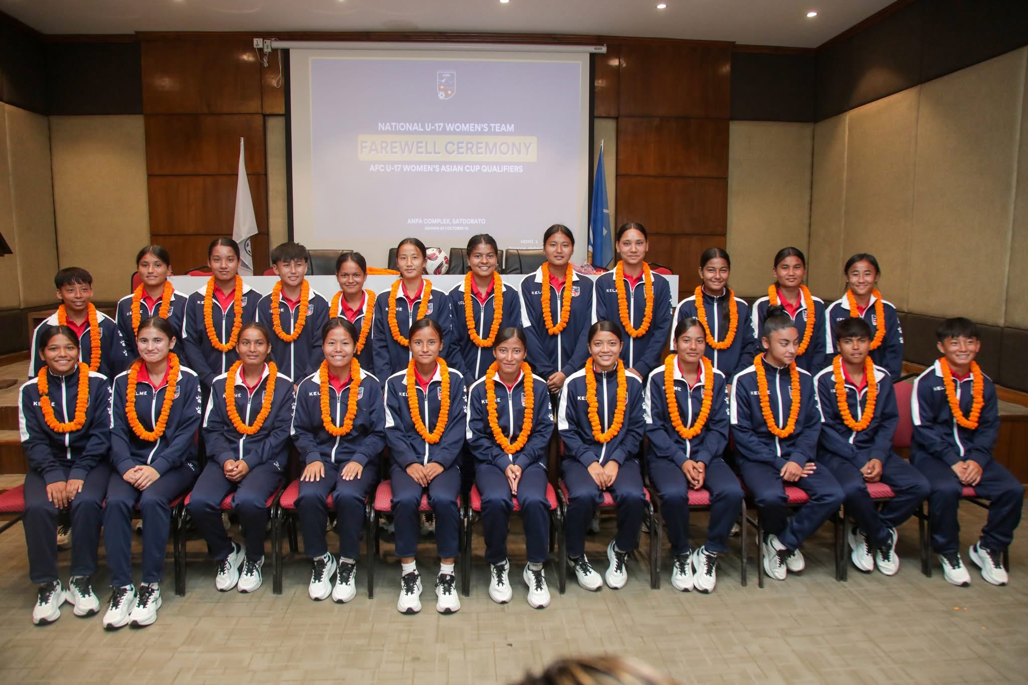 "content": "<p><span style=\"-webkit-text-size-adjust: 100%;\">काठमाडौं । एएफसी यु–१७ महिला एसिया कप २०२५ को छनोट प्रतियोगितामा भाग लिन नेपाली महिला फुटबल टोलीको बिदाइ गरिएको छ। </span><br></p><p><br></p><p>टोलीलाई शुक्रबार एक विशेष समारोहकाबीच अखिल नेपाल फुटबल संघ (एन्फा) का अध्यक्ष पंकजविक्रम नेम्वाङलगायत पदाधिकारीहरूले बिदाइ गरेका हुन्।</p><p><br></p><p>एन्फा मुख्यालयमा आयोजित बिदाइ कार्यक्रममा अध्यक्ष नेम्वाङले टोलीलाई शुभकामना व्यक्त गर्दै खेलमैदानमा आफ्नो सम्पूर्ण क्षमताको प्रदर्शन गर्न आग्रह गरे। उनले भने, “हाम्रो युवा खेलाडीहरूले देशको प्रतिनिधित्व गर्दै थाइल्यान्डमा उत्कृष्ट खेल देखाउने विश्वास लिएको छु। यो केवल खेल प्रतियोगिता होइन, देशको गौरव बढाउने अवसर पनि हो।”</p><p><br></p><p>छनोट प्रतियोगिता अन्तर्गत नेपाल समूह ‘बी’ मा रहेको छ। उक्त समूहमा नेपालसँगै घरेलु टोली थाइल्यान्ड र तुर्केमिनिस्तान रहेका छन्। नेपाली टोलीले पहिलो खेल अक्टोबर १५ मा तुर्केमिनिस्तानविरुद्ध खेलेपछि दोस्रो खेल अक्टोबर १७ मा आयोजक थाइल्यान्डसँग प्रतिस्पर्धा गर्ने तालिका छ। यी दुवै खेल थाइल्यान्डमै हुनेछ।</p>",