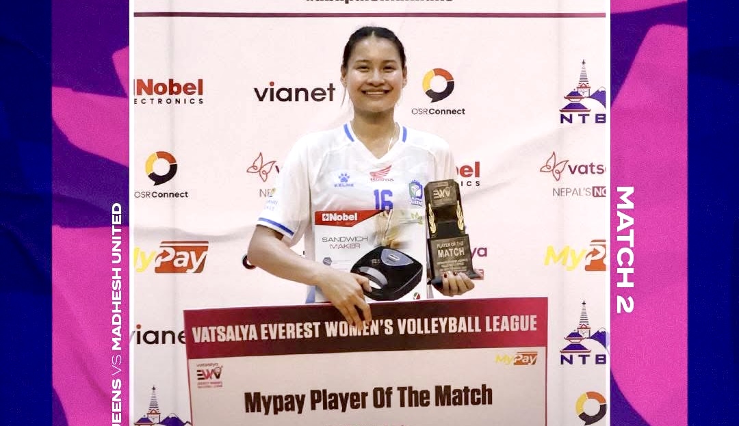 "title": "एभरेष्ट महिला भलिबल लिग: ललितपुर क्विन्सको लगातार दोस्रो जित",