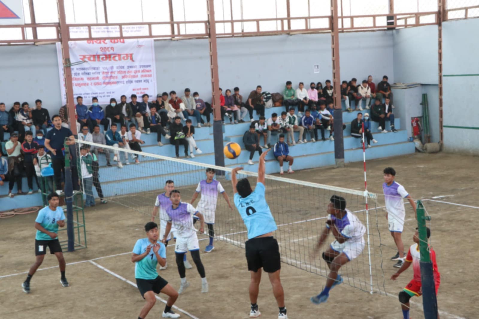 "title": "अन्तरपालिका भलिबल : पहिलो दिन ६ खेल सम्पन्न",