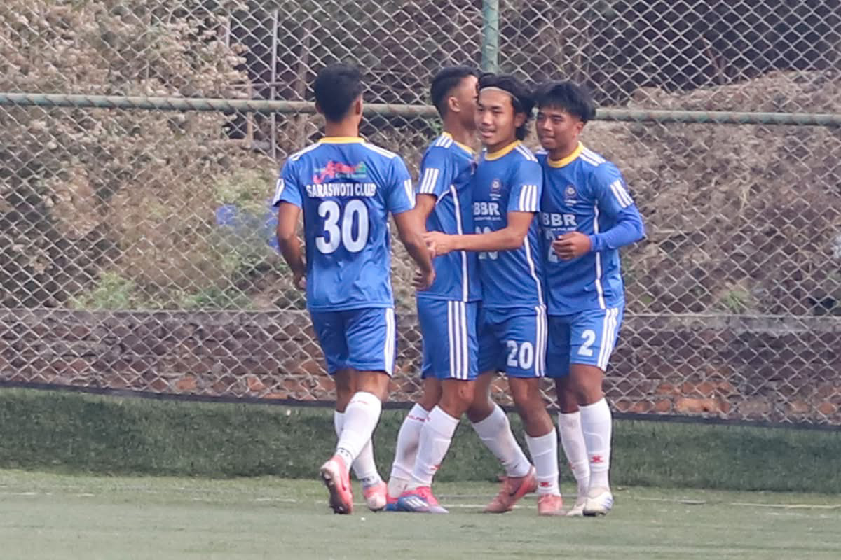"content": "<p><span style=\"-webkit-text-size-adjust: 100%;\">काठमाडौं। सरस्वती युथ क्लबले शहिद स्मारक ‘बी’ डिभिजन लिगमा सुखद् सुरुआत गरेको छ।</span><br></p><p><span style=\"-webkit-text-size-adjust: 100%;\">सातदोबाटोस्थित एन्फा कम्प्लेक्स मैदानमा बुधबार सम्पन्न आफ्नो पहिलो खेलमा सरस्वतीले बाँसबारी क्लबलाई २–१ ले हराएको हो। </span></p><p><span style=\"-webkit-text-size-adjust: 100%;\">सरस्वतीको जितमा सबिन लुङ्गेली मगर र धिरेन्द्र बहादुर शाहले गोल गरे। बाँसबारीका विक्की राईले गरेको गोल सान्त्वना रह्यो।</span><br></p><p><span style=\"-webkit-text-size-adjust: 100%;\">३३औं मिनेटमा कप्तान शक्ती राईले मैदानको बिच भागबाट दिएको बलमा रन बनाउँदै सविनले अपर बारबाट गोल गरेका थिए।</span><br></p><p><span style=\"-webkit-text-size-adjust: 100%;\">५१औं मिनेटमा धिरेन्द्रले अग्रता दोब्बर बनाए। आफ्नै खेलाडीले दिएको बललाई बाँसबारीका गोलकिपरले क्लियर गर्न ढिला गरेका थिए। सोही मौकाको सदुपयोग गर्दै धिरेन्द्रले बल खोस्दै सहजै गोल गरे।</span><br></p><p><span style=\"-webkit-text-size-adjust: 100%;\">इन्जुरी समयमा बाँसबारीका विक्कीले गोल फर्काए पनि पर्याप्त रहे।</span><br></p><p><span style=\"-webkit-text-size-adjust: 100%;\">जितसँगै सरस्वतीले तीन अंक जोडेर प्रतियोगितामा सुखद सुरुआत गरेको छ भने बाँसबारीले हारबाट प्रतियोगिताको सुरुआत गरेको छ।</span><br></p>",